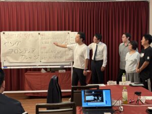 講義の終盤では、合宿2日間を通じて得た学び等を発表しました。